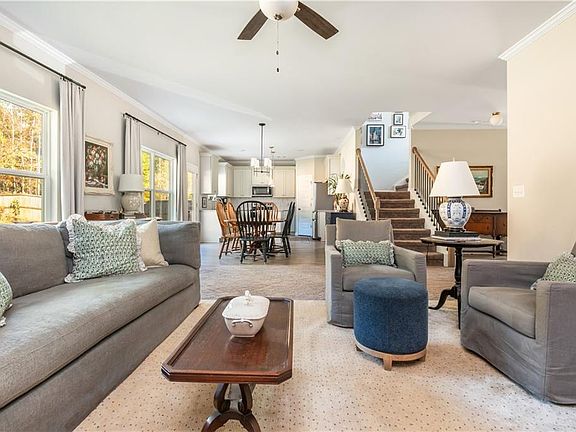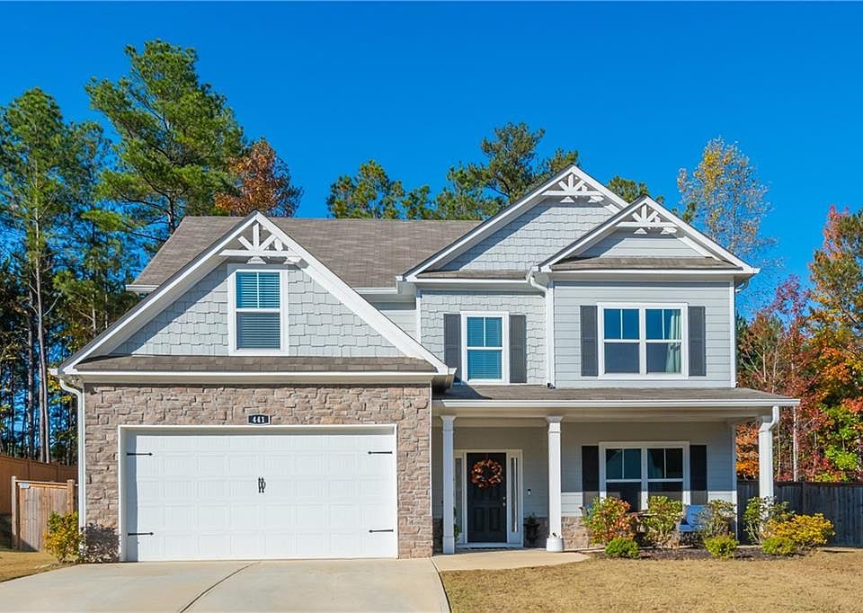 Located in Traditions at Cedarcrest, this home offers easy access to shopping, dining, and both indoor and outdoor entertainment options — blending comfort, convenience, and style in one perfect package. This home epitomizes timeless Southern charm with a covered rocking-chair front porch and a beautifully designed interior. Step inside to a welcoming foyer that opens to the formal living and dining rooms, perfect for entertaining or family gatherings. The spacious great room with a cozy fireplace seamlessly connects to the breakfast area and gourmet kitchen, which showcases stunning granite countertops, stainless steel appliances, a large island, walk-in pantry, and shaker-style cabinets with soft-close doors and drawers. A convenient powder room completes the main level. Upstairs, you’ll find a luxurious primary suite with a walk-in closet and spa-inspired bath featuring dual vanities, a soaking tub, and a separate shower. Three additional bedrooms, a full bath, and a laundry room provide plenty of space for everyone. Whether you want to enjoy outdoor living on the privacy of your back patio, or host the next family gathering in this spacious open concept, this home is perfect for you!