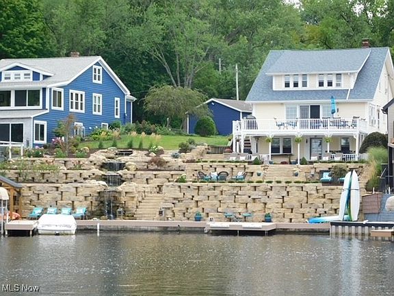 An entertainer's DREAM! Nestled on the shores of East Reservoir on the main chain of Portage Lakes sits this majestic 3 level home with 95 ft of lake frontage with views of the iconic Portage Lakes clock tower. A mix of old charm with built-ins and stained glass coupled with modern updates; truly a one of a kind treasure. 2 car garage plus parking for 8 cars! 5 bedrooms (with additional flex room that could be used as a 6th bedroom in lower level), 4 full baths, 3 full kitchens; including a top level in-law or junior suite. Walkout lower level features a kitchen for entertaining guests lakeside, 6th bedroom, full bath, and large recreation room with heated floors. Main level features living room with views of the lake and French doors to the deck, 2 full baths, 2 bedrooms, updated kitchen with granite countertops, plus Master bedroom suite with double closets and updated master bath and tiled shower. The seller has made extensive updates - including a massive landscaping update with waterfall, exterior lighting, 2 new docks and lift. Recognized on the cover of a publication of the Ohio Landscape Association magazine, the exterior luxury lakeside stonework lined with perennial flower beds features gorgeous multi-level entertaining spaces with firepit, hot tub, covered gazebo, and outdoor grill. Additional updates include a new roof, updated main level kitchen with beautiful granite counters and backsplash, and basement. Turn up the charm, fire up your pontoon, call your friends, and stay awhile. Make this one yours and start living your dream on the beautiful Portage Lakes!