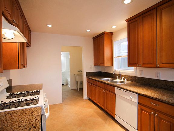 Beautiful two bedroom one bath house features big front yard and porch. spacious living room, bamboo flooring, new carpet and tile. Freshly painted inside and out. Open remodeled kitchen includes stove and dishwasher. Inside laundry room with sink. Small back yard and covered patio plus storage room. Water, trash and gardener included