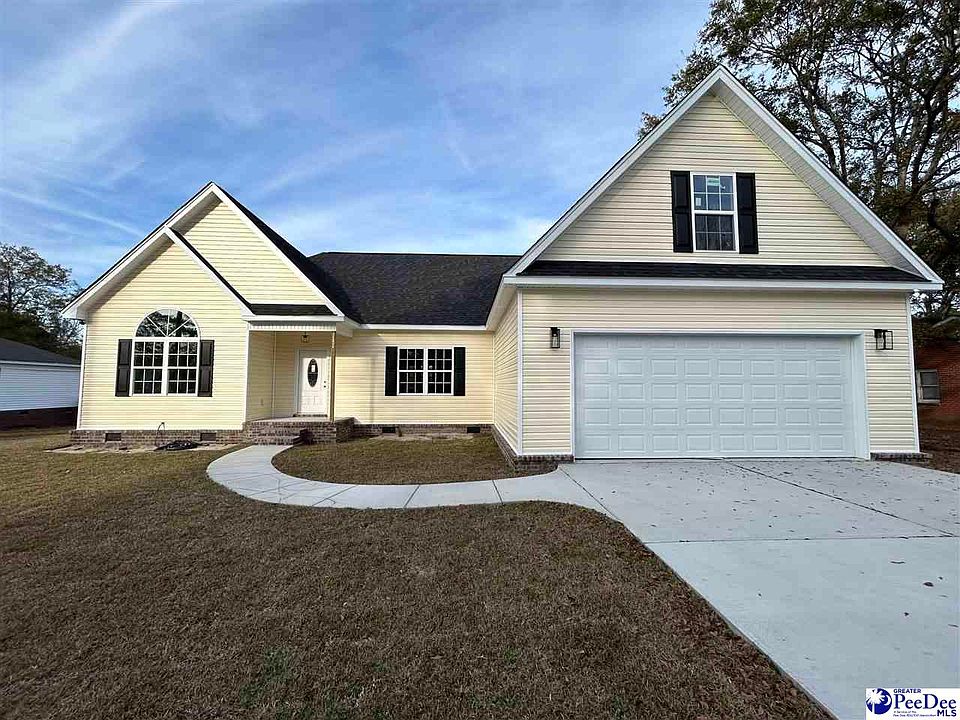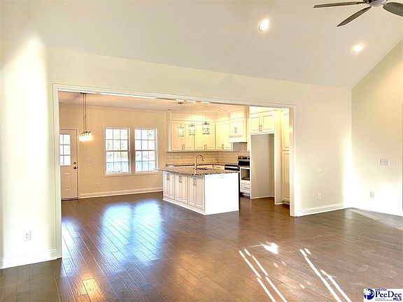 Beautiful new construction in South Florence. Open floor plan, neutral colors, wood floors throughout except for bathrooms. Owner's suite has tray ceiling, recessed lights, walk in closet. Included is a spacious bathroom with large soaking tub, tile shower with glass door, large vanity with 2 sinks, private water closet. Bedrooms 2 and 3 are on the other side of the home which is important for privacy. Kitchen has a large island, opens to a covered back porch. Granite counter tops in kitchen and bathroom vanities. Great room has vaulted ceiling and