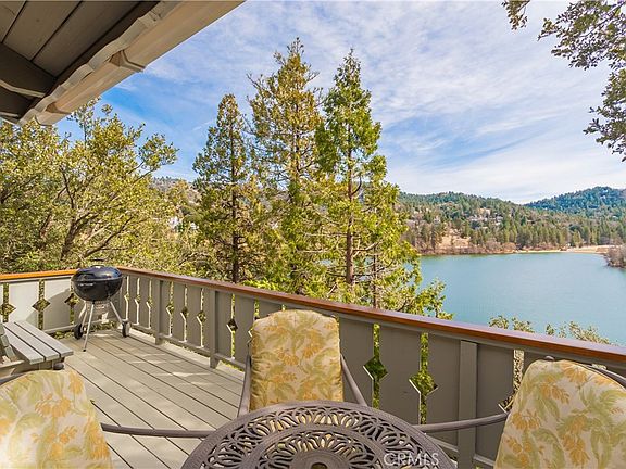 The best LAKE VIEW home in Crestline. It has FULLY FURNISHED with incredible LAKE and mountains VIEW. It offers 2 bedrooms, 2 baths plus a HUGE bonus room. The living room is warm and inviting with vaulted wood beams ceiling, and a wood-burning cozy fireplace. The open-concept kitchen with a bar counter flows seamlessly into the spacious dining area, where large picture windows frame the spectacular lake views. The deck is overlooking 180-degree views of Lake Gregory and mountain. Downstairs, a large bonus/game room and half bath provides excellent potential for guest or it can be use as 3rd bedroom. washer/dryer inside the house. This property is sold fully furnished and is a turn-key, mountain retreat package. Just a minutes from the lake and walking distance to Goodwin & sons’ supermarket, crestline village, shopping, and restaurants. This is the perfect vacation getaway home with year-round mountain sanctuary.