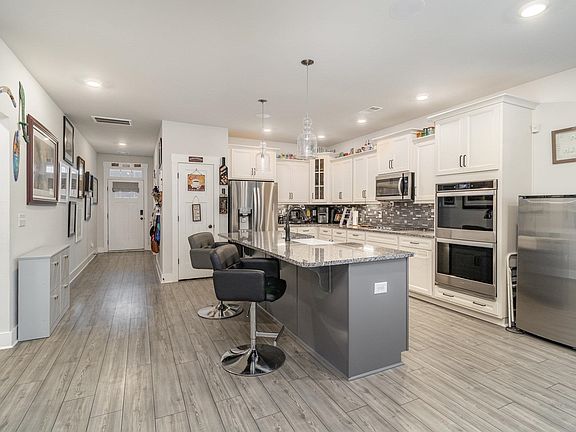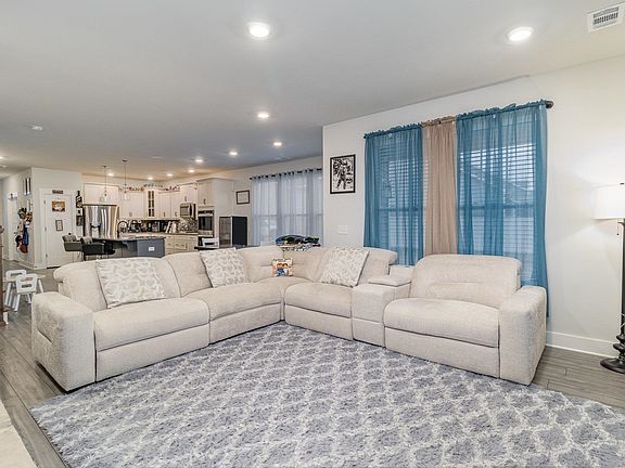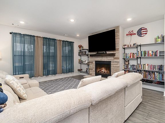 Step into a world of refined elegance with this custom-crafted, two-story masterpiece in the coveted District 5, where every detail reflects unparalleled quality and timeless sophistication. Spanning an expansive open floor plan, this residence boasts 9-foot ceilings, gleaming hardwood floors across the main living areas, and upgraded plush carpeting in the generously proportioned bedrooms. The striking oak staircase, accented by wrought iron railings, leads you through a home designed for both grandeur and warmth, anchored by a gas fireplace with a dramatic slate surround and rustic timber mantel. At the heart of the home lies a culinary haven—a chef’s kitchen meticulously designed with custom soft-close cabinetry, double wall ovens, a deep farmhouse sink, under-cabinet lighting, and an oversized island that effortlessly blends functionality with style. Perfect for intimate family dinners or lavish gatherings, this space is as versatile as it is breathtaking. The main-floor primary suite offers a serene retreat, while upstairs, a second master suite with its own ensuite bath and walk-in closet provides luxurious flexibility for guests or multigenerational living. Each bedroom is thoughtfully oversized, featuring ample closet space and pre-wired ceiling fan connections for personalized comfort. The open loft upstairs serves as a dynamic canvas—ideal as a cozy family lounge, vibrant playroom, or dedicated fitness haven. Storage abounds with a dedicated upstairs space, a convenient laundry room nook, and a garage cleverly designed with an extra area for a motorcycle, workshop, or additional organization. Elevating the experience, a SONOS surround sound system weaves seamless audio throughout the home, creating an immersive ambiance for every occasion. Nestled in the prestigious District 5, this home offers proximity to top-tier schools, shopping, premier golf courses and scenic parks, blending urban convenience with suburban tranquility. With its bespoke finishes, cutting-edge technology, and rare versatility, this residence is more than a home—it’s a legacy for those who seek the extraordinary. Sellers possess an easily assumable lower rate FHA mortgage, call listing agent for more details