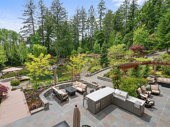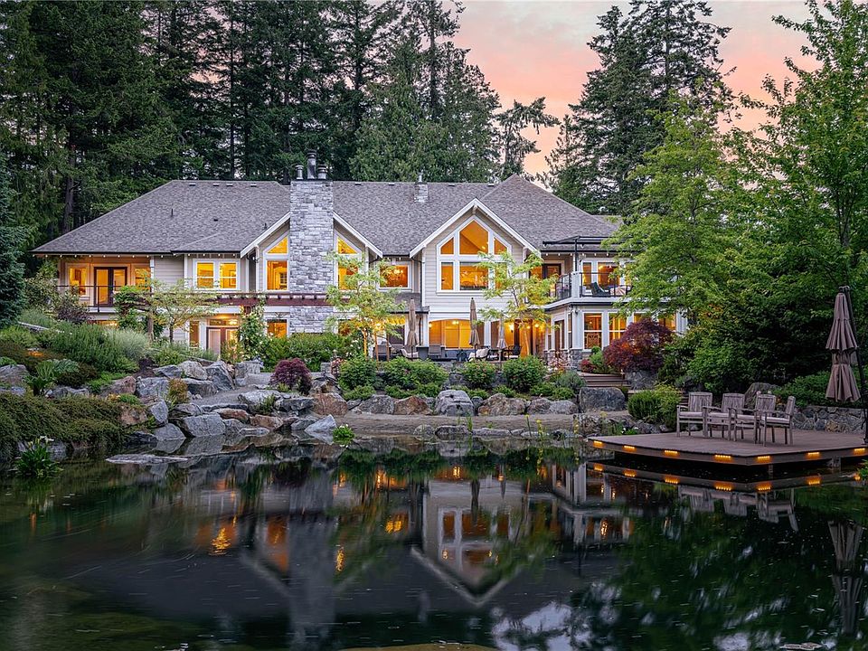 Welcome to Glendower, a private 2.7-acre gated estate just 15 minutes from Downtown. This 7,000+ sq ft executive home is surrounded by over $1.5M in landscaping, including a recreation swimming pond with a dock and beach, lush gardens, waterfalls, and an outdoor kitchen. Inside, enjoy soaring ceilings, in-floor heating, and sun-filled, south-facing living areas. The main level features a grand kitchen, formal dining and living rooms, an office, and a primary suite with dual walk-in closets, heated floors, and deck. The lower level offers a state-of-the-art theatre, live-edge bar, sunroom, and a 2-bed, 2-bath legal suite. Two double garages, multiple flex spaces, and extensive upgrades throughout complete this one-of-a-kind property. This is a rare opportunity to own a home where elegance and privacy converge. Your private resort awaits. Contact us today to schedule a private viewing. Detailed information sheet and full contractor/maintenance portfolio available upon request.