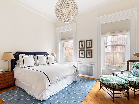 Expansive Parlor floor 3 bedroom, 2 bathrooms, with custom designed herringbone hardwood elaborate crown moldings, wood-burning marble fireplace, original shutters and pocket doors, central AC and 13ft ceilings. Chefs kitchen with Wolfe range and stove, Subzero fridge, Bosch microwave and dishwasher, granite island and countertops, glass backsplash, and custom wood cabinetry with self-closing drawers. Wood deck off the kitchen leads to a private garden patio. The primary suite includes a wall of closets and ensuite marble primary bath. Second and third bedrooms have ample storage and closet space. Washer and dryer conveniently in unit. Additional storage unit available. Located in prime Cobble Hill historic district, between Kane and DeGraw Streets. Close to F/G train, movie theater, community parks, and the restaurants and shops on Court and Smith Streets that we all love.
