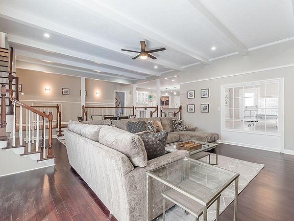 Large stone fireplaceProfessionally decorated homeSun roomCozy family roomNew stainless steel appliancesFully equipped kitchenBasement with a gym