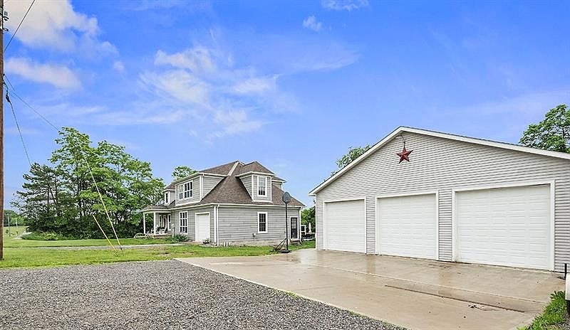 Privacy, endless wooded views and a contemporary style farmhouse await you at this Franklin Township beauty! The inviting front porch welcomes you to this meticulously updated home. As you make your way inside, you will notice the open floor plan that was created for the entertainer! The combination of the ceramic hardwood style flooring, high ceilings, and the open feel make for quite the first impression! The custom kitchen has ample cabinetry, gleaming granite counters, and stainless appliances. The main level family room boasts an impressive stone fireplace focal point for comfortable elegance. The serene master suite is flooded with light and there is a private en suite. There are two massive bedrooms on the opposite side of this level and another updated full bath. The 40 x 60 detached garage has high ceilings, oversized doors and offers more space than you can ever imagine owning. The 15+ acres gives you the ability to roam, farm, & explore! Fantastic location close to Moraine!
