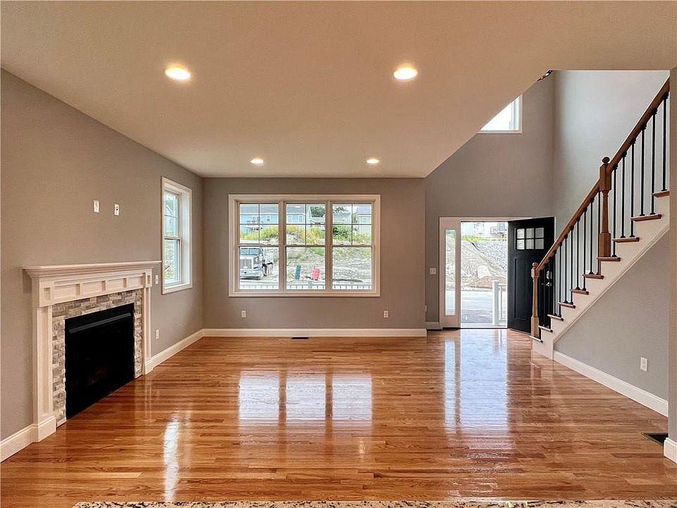 THERE ARE ONLY A FEW LEFT!!! LOCK IN YOUR RATES NOW!!! READY TO MOVE RIGHT IN!!! This stunning 3 Bed 2.5 Bath Colonial, New Construction home with its open floor plan seamlessly flows from it's fortress like foyer w 18+ high ceiling, to it's custom built kitchen boasting a large center island, granite countertops, high-end appliances, with loads of cabinet space. Featuring over 25+ oversized windows, 10 pitch roof and 9 foot ceilings, allowing in the perfect amount of natural sunlight, makes this space even more warm and welcoming. Gas marble tiled fireplace, 3/4" oak hardwood floors, large 2nd floor laundry room, master en-suite with an expansive walk in closet & tiled walk in shower, oversized 2 car garage, privacy fence and so much more. All of this is situated on a little over 10,000 SQFT of this beautifully manicured lot w side yard privacy fence, back deck featuring viewing fence for the breathtaking Fall & Spring water views right outside your back door. You get all of this and so much more, in this extremely sought after neighborhood with stunning views of the Blackstone Valley River Parkway located just minutes of multiple entrances to the bike path. This home is what makes dreams come true. DON'T MISS OUT!!! MOVE RIGHT IN TO THIS LUXURY NEW CONSTRUCTION HOME!!! More pictures to come.