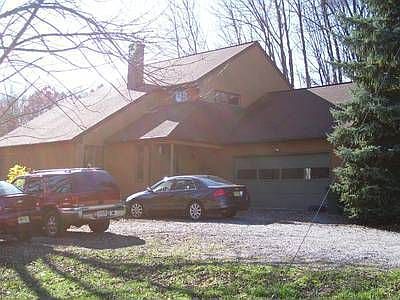 CHALET Extremely private land.15 acres mostly wooded. Pond and stream on the property.Master bedroom w/full bath on first floor and two bedrooms in loft.Large two level barn.
