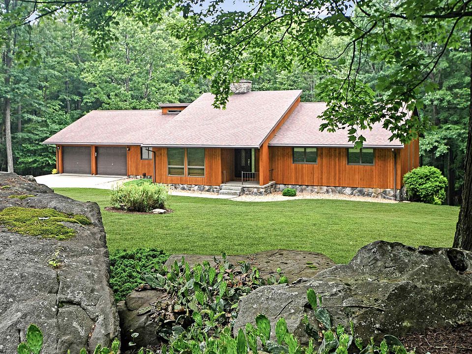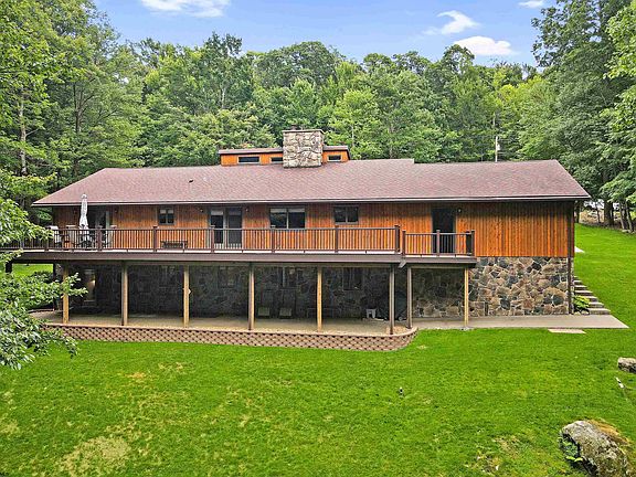 Wooded Paradise! Nestled in the woods but less than 15 minutes to town. Check out this immaculate cedar home sitting on a beautifully wooded 4 acre lot. A soaring foyer that leads you to the inviting sunken living room that showcases the breathtaking stone fireplace. Enjoy cooking dinner in your gorgeous kitchen that has barely been used then sit down to eat in your formal dining room. There are 3 bedrooms and 2 full baths upstairs. The finished basement has an office/ extra room, full bath, second kitchen, gathering room, storage rooms and a wood stove to keep you toasty in the winter. The home is hooked up to a partial generator that will run everything you need to keep you comfortable. Spend your mornings drinking coffee on your 875 sq ft deck or covered patio as you watch the wildlife frolic in your backyard. You'll love the nature of it. Don't miss out on this one!