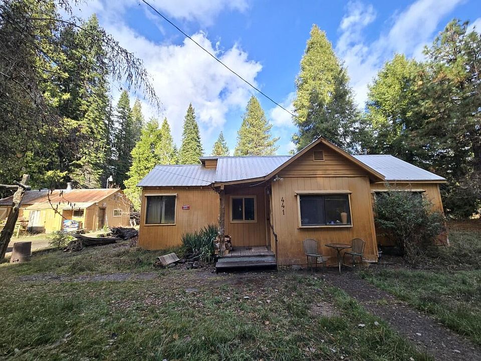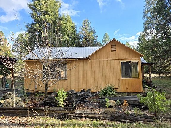 3Bdr/1Bth on 3 beautiful flat acres. 1297 SF., nice kitchen, rich wood cabinets, vinyl floor, double pane windows, garden window, laundry room, ceiling fans, water filter in kitchen, bathroom and at pump, good well per seller, wood stove, large shop with 220, storage building, garden area or dog run. RV or boat awning,, storage with room for small boat, lots of sugar pine, cedar Douglas fir trees, and an apple tree.