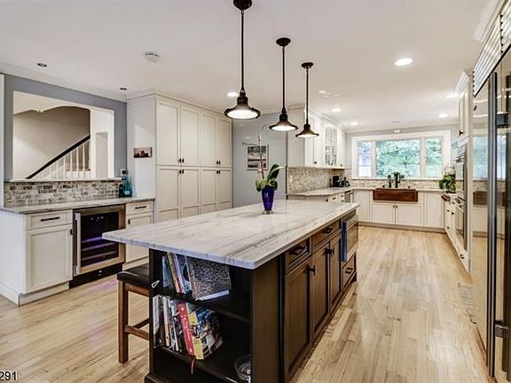 This majestic Colonial sits perched on hill in a gorgeous SO neighborhood. 5+ BRs. Winter NYC views. Stunning recent renovation. Spacious rooms, grand entry, wood floors, formal living room with fireplace and lots of light. Excellent flow for entertaining. Designer kitchen with Wolf appliances, Sub-Zero refrigerator, copper farmhouse sink and detailing, quartz countertops. Opens to DR and lovely 3-Season sunroom. Large master suite with WIC and pvt balcony. Renovated master bath features double sinks and jetted tub. Separate au pair suite. Flexible 3rd floor with skylights can be additional BR, family room. Newer roof, Andersen windows, CAC on 2nd and 3rd fls. Attached garage. Beautiful 1 2 acre grounds.