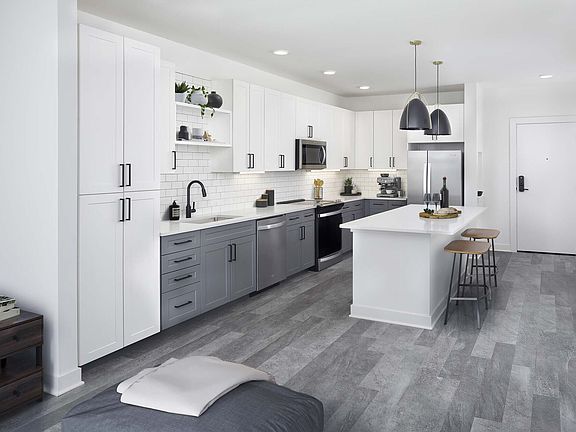 - Exterior features: , 10` ceilings, 42-inch upper cabinets, 9` ceilings, Accessible, Balcony, Bathtub with curved shower rod, Business Center, Comm. room available to rent, Concrete-look plank flooring throughout, Corner apartment home, Courtyard, Energy efficient windows with solar shades, Housekeeping, Kitchen island, LED lighting throughout, Loft Style, Matte black hardware, Niche in foyer, Pendant lighting, Powder bathroom, Recessed lighting, Smart door locks with smartphone compatibility, Stainless steel appliances, Stand alone shower, Stoop entry, Study, Tech bar/desk, Top Floor, Townhome, USB outlets, Under cabinet lighting, Undermount sink with pull-down sprayer faucet, White quartz countertops, White subway tile kitchen backsplash, Wi-Fi in common areas