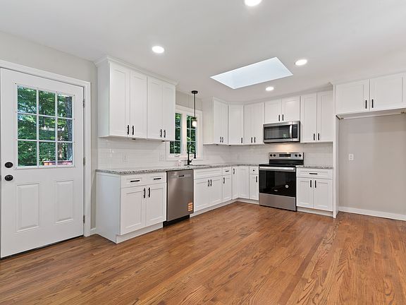 Covered front porchNew deckOil warm air heatWhite shaker style cabinetsFull unfinished basementBay windowFormal dining room