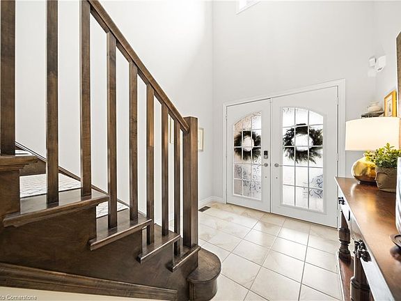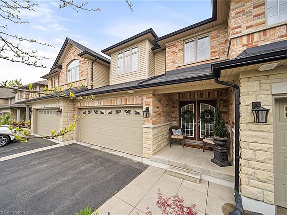 Executive Townhome in Prestigious Stonehenge Complex–-Ravine Setting! Spacious and meticulously maintained home located in sought-after Ancaster Meadowlands. Tucked into an exclusive complex, this stunning property offers the perfect blend of natural tranquility and urban convenience. Backing onto a serene, treed ravine, featuring over 3,000 sqft of living space with 3 beds & 3 baths. Luxurious upgrades throughout, including hardwood flooring, potlights and high-end finishes that exude elegance and warmth. Layout is designed for both comfort & entertainment, featuring a welcoming foyer with soaring ceilings, a cozy living room with fireplace and a bright eat-in kitchen equipped with custom cabinetry, granite countertops, a stylish backsplash, SS appliances & a 6-burner gas stove. Upstairs, the expansive primary suite is a true retreat, complete with sunset views, a luxurious soaker tub and spa-like ensuite.Two additional generously sized bedrooms offer versatility—ideal for guests, family or a home office with treetop views. The fully finished lower level is a standout feature, boasting a second fireplace, full kitchen, and flexible space perfect for extended family, a teen haven, or a personal sanctuary. Step outside to your private deck oasis, surrounded by lush trees and a peaceful ravine view – the perfect spot to unwind or entertain. Additional highlights include: double car garage, Electric Vehicle Charger, remote control blinds & dimmer switches, keyless Weiser smart locks (Wi-Fi compatible), new fridge, upgraded fireplace, wool carpet on lower stairs, plant watering system on deck, upgraded security system. Enjoy stress-free living with condo fees covering all exterior maintenance, grass cutting, snow removal and windows. Minutes from highway access and walking distance to shopping, restaurants, parks and the transit hub with direct service to McMaster. Rare opportunity to enjoy nature, space and luxury in a prime location. Move-in ready and waiting for you!
