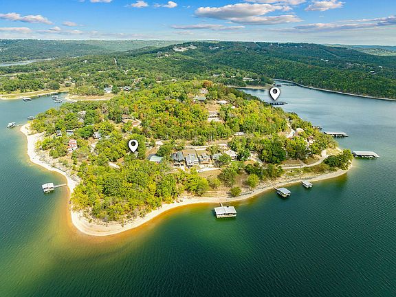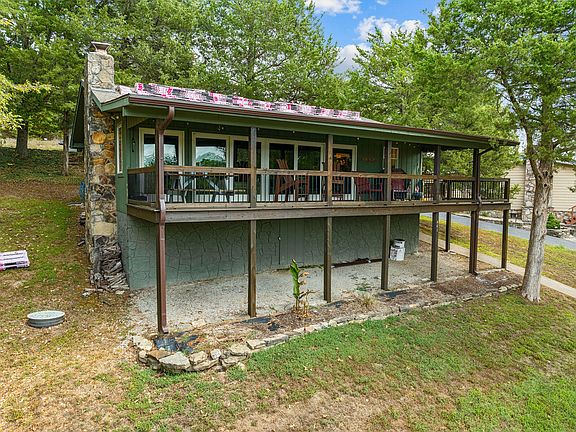 This one has it all and is an ideal package for a cabin on the lake. Waterfront, great main channel views of Table Rock Lake, large covered deck, lakeside firepit area and an available boat slip! Updated interior with tons of natural light furnishings available. Large primary bedroom and a secondary bunkroom. Detached 2 car garage. A 10 x 24 slip is available for extra $65,000 in a well protected concrete dock with an exceptional swim deck. New roof on home and detached garage.