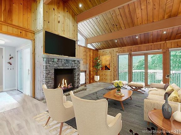 PERFECT HOME TO LIVE FULL TIME, VACATION, OR INVESTMENT IN SAPPHIRE VALLEY, NC! Asking for only qualified buyers to submit all reasonable offers to these very MOTIVATED SELLERS! Sellers also offering a $5000 bonus to the buyer's agent! This custom-built lakefront home has been updated with a brand new roof with a 25-year warranty on the main house, the tree house, and on the garage, an updated and reinforced decking out back, an updated and reinforced staircase leading to the lake, a new washer/dryer on the first floor, and more! The home sits on 2.12 professionally landscaped acres with mountain views from almost every room and the most incredible view of Hogback Lake. Smartly designed, the main level has three bedrooms with a split floor plan where the master bedroom suite is on one side with a huge master bath and a private entrance to the oversized back deck. On the opposite side of the main floor there are two guest bedrooms, a full guest bathroom, a laundry area, and a powder room. On the lower level there are two entrances, one from the interior with an interior custom wood staircase, and a private exterior entrance, creating the option for two independent homes, hence short-term rental investment. When entering the lower level, there is a spacious landing with a large office that has lovely views. Large windows, tons of storage, one bonus room with windows and a closet, four large bedrooms with windows and closets, two full bathrooms, a separate living room, kitchenette, and laundry area complete the lower level. The second level can be used as your private guest suites or as a separate “home” to lease to short- or long-term tenants. Easy to show! All furnishings included!