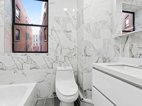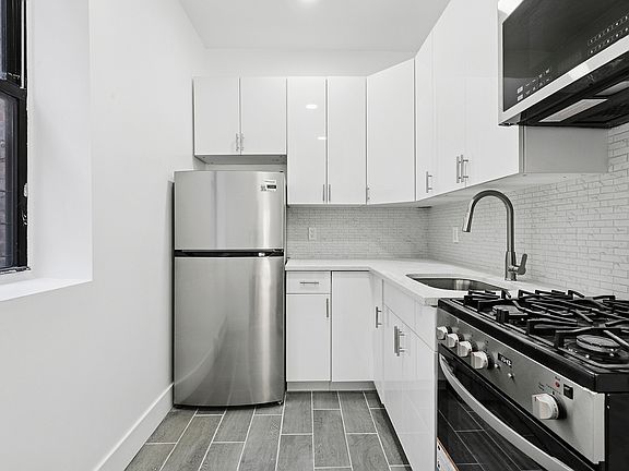 The apartment has a great flow of open space and degree of separation of livable space, with high ceilings and beautiful hardwood floors. The Newly Renovated Kitchen has a microwave with under-mount light/vent; clean white quartz countertops; mini marble subway-tile backsplash; high arching pull-down faucet with deep bowl under-mount sink; separate closet for a self-controlled Navien (Energy Star rated) tankless water & heating boiler (for fully controlling the entire apartment vs the building's control).