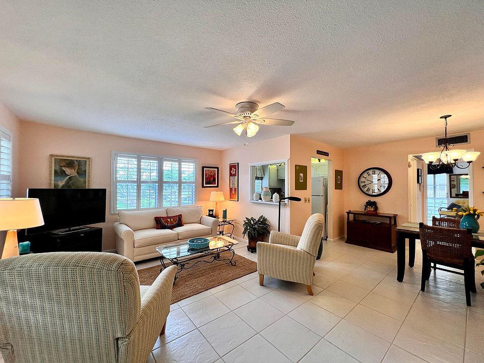 A Very Pretty Place To Call Home In 55+ Century Village! Lovely CORNER 1/1.5 With Central AC, Updates, and Serene Color Palette. Nicely Updated Baths. Neutral Tile Flooring Throughout. Designer California Shutters In Living Area. Spacious Bedroom Suite Features Access to the Lanai, Wall of Closets, and an Updated Full Ensuite Bath With Step-In Shower. Sold Furnished With Contents. Well Maintained Building With New Roof (2023), Second Floor Laundry, and Resident Patio Area. Fantastic Location Central To Numerous Pools - Camden, Somerset, and Kent! Century Village Is A Resort Style 55+ Community With So Much To Offer... - shows, movies, clubs, pools, security, and transportation service. The Clubhouse features a theater, indoor pool, card room, community/party room, billiard room, shuffleboard, tennis, pickleball, bocce, and two outdoor pools, Numerous heated outdoor pools throughout the community. Separate fitness center with gym and outdoor heated pool & resistance pool. Two guarded gates and 24-hour roving security patrol.
