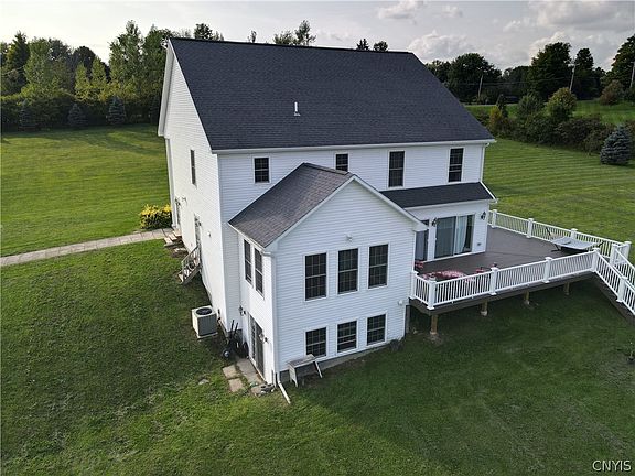 Be impressed with this CUSTOM home on over 6 Acres!! Enter thru the stunning 2 story foyer and gleaming hardwood floors to see all that this home has to offer!! Expect to be impressed with the open floor plan in the back of the house. The OVERSIZED living room features a glass wall with sliding glass doors to appreciate the beauty of the backyard! Enjoy your morning or late night drink on the 900 ft L shaped BRAND new Composite deck!!! You can exit out to the deck via the living room and enter back through the dining room!! The Beautiful kitchen features custom cabinets and granite countertops, as well as an incredible amount of storage! First floor living room with an attached full bath could be used as a bedroom if first floor living is needed! Laundry room is currently on the first floor as well with half bath!! Wait till you see the size of the Main upstairs Bedroom!! It has an attached bath, walk in closet, and another attached bedroom that could be a private sitting area! Exit the home thru the walk out basement