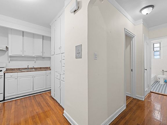 This thoughtfully designed home features a large, sun-filled bedroom, a bright eat-in kitchen, and three deep closets providing plenty of storage. The beautiful hardwood floors throughout enhance its timeless appeal, and the layout offers comfortable living with room to personalize.