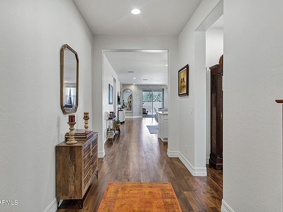 This immaculate 3-bedroom, 3-bath home with a versatile den offers the perfect combination of style, comfort, and convenience. Located directly across from a scenic park, it provides an inviting setting for picnics, play, and outdoor relaxation. Inside, a spacious open floor plan makes entertaining easy, with a great room that flows seamlessly into the dining area and kitchen. The chef-inspired kitchen boasts generous cabinet and counter space, granite countertops, subway tile backsplash, a large center island, and stainless steel appliances—including the refrigerator. The primary suite is a peaceful retreat with a dual-vanity en suite bathroom, while the den offers flexible use as a home office, playroom, or guest space. Washer and dryer are included for your convenience. Step into your private backyard to enjoy a shaded morning coffee, or venture into the Eastmark community for a lifestyle that extends far beyond your doorstep. Residents enjoy a wealth of amenities including a sparkling pool, clubhouse, splash pad, multiple playgrounds, baseball and basketball courts, disc golf, a skate park, fishing lake, and the popular First Friday concerts at the event pavilion. With over 100 community events each year, there's always something happening. Local favorites like Handlebar Diner and Steadfast Farms add to the charm, making this a truly vibrant place to call home. Don't miss the chance to experience all that this home and Eastmark have to offer