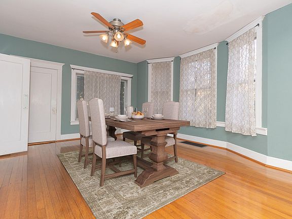 Welcome to 4410 Stringtown Road and this 1.5 story home with 3 bedroom 1.5 baths. Conveniently located on the Northside of Evansville on a half acre lot. The charming front porch will invite you in, and the architectural features and open concept will make you want to stay. The entry has the stairwell to the upper level. The room to the right is the LIVING ROOM, with lots of natural light, original hard wood floors plus a fireplace. The DINING ROOM is open to the living room and has many windows to the backyard. The kitchen has plenty cabinets and counters and the seller is offering a $3000.00 appliance allowance at closing. Rounding out the main level is a half bath. Upstairs you will find 3 bedrooms and a full bath plus ample closet space. The basement is unfinished and could be whatever use you need. Outside is a covered front porch, a small back porch, a LARGE detached garage and a lovely yard.