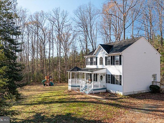 Breathing space on a relaxing quiet lot near Lake Anna. Large yard with playset is perfect for family time. Enjoy birds singing and bright night stars. Large master suite with walk-in closet includes second floor laundry. Unfinished basement is perfect for storage or tools. Whether you enjoy gardening, fire pits, grilling out or just a quiet night in, this house has it all. --This charming home is located on a large 5 acre plot less than 10 minutes from Duke Creek Marina on Lake Anna. Surrounded by trees, this quiet residence has plenty to offer. Enjoy the cedar playhouse on the cleared side yard, watching the birds from the gazebo, or a lovely dinner grilling out of the deck. Inside, there's a front room with sliding barn door that can be used as an office. Through the dining room into the kitchen with pantry, stainless steel appliances, and granite counter tops. Whirlpool range and microwave. replaced 2022. Frigidaire dishwasher. Walk into the living room with fireplace build out and mantle. Half bath is located across from stairs to unfinished basement. Basement has rough in and washer hook up. Cellular window shades placed throughout finished living spaces. Upstairs are two bedrooms with a full bathroom. Master suite with ensuite bath, walk in closet, and washer / dryer hookups.