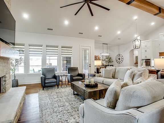Fall in love with this pristine home in Stratford Pointe, just steps from the neighborhood park! Offering 3 bedrooms, 3 full bathrooms, a 3-car garage, and a designated office, this home has a space for everyone. The living room showcases a gorgeous stone fireplace and vaulted ceilings. The kitchen is perfect for gathering friends and family, complete with a large island, abundant storage, and a spacious walk-in pantry. The primary suite feels like a retreat with a luxurious bathroom, walk-in closet, and private access to the covered patio overlooking the landscaped backyard. Each guest bedroom has an adjacent bathroom and walk-in closet. The expansive back patio includes a cozy fireplace, generous seating areas, and a built-in gas grill—perfect for entertaining. The third garage bay is separated by a wall making it ideal for storage or a workshop. Conveniently located in Lubbock ISD and zoned for Liberty High School, just minutes from the new Red Feather Golf Course.