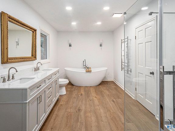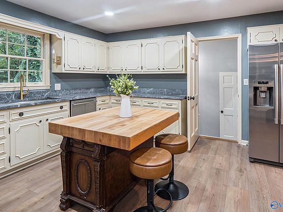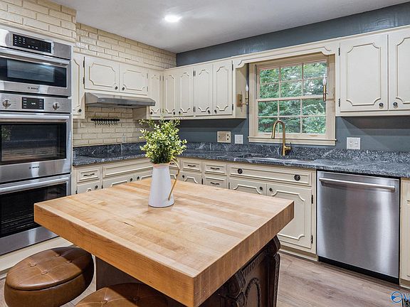 Nestled on desirable Burningtree Mountain, this timeless home offers a rare location backing to tranquil forest views on a ~1.26 acre lot! Enjoy unwinding in the new luxurious master bath with soaking tub, towel warmer, and huge closet. Gorgeous new high-end LVP floors flow seamlessly across entire one-level home. Chef's kitchen features granite counters, maple butcher block, and built-in banquette. High-end appliances such as Bosch kitchen, Thermador cooktop, SpeedQueen washer/dryer. Home theater with pre-wired surround sound offers cozy movie nights with an old fashion wood burning stove. Close to country club, boat launch, nature preserve & I-65 for easy commute into HSV!