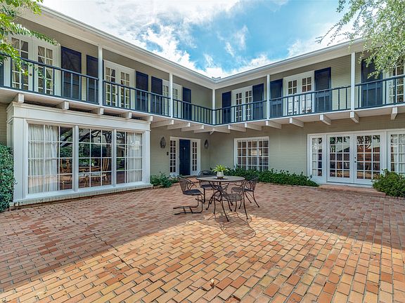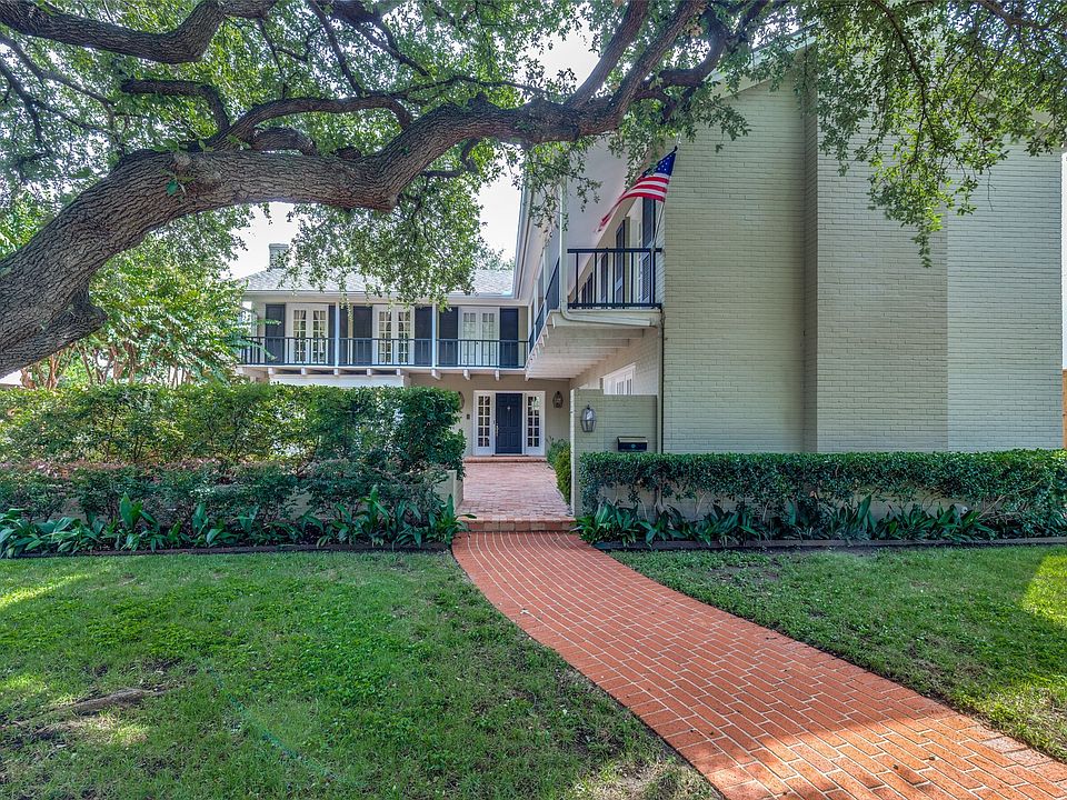 A unique opportunity awaits at this one-owner residence designed by renowned architect Overton Shelmire, who designed The Adolphus Hotel and other iconic Dallas landmarks. This New Orleans-inspired home exudes charm, with balconies spanning the entire home, and a large, inviting courtyard welcoming you into a grand entryway flanked by the formal living and dining rooms. The generous rooms are perfect for entertaining and are flooded with natural light from the expansive windows! The study (5th bedroom) has pocket doors for privacy, and access to a full bath directly across from the wet bar. The kitchen and den flow together to create a comfortable, extended family space with French doors that open into the courtyard, perfect for gathering with family or friends and creating that desired mix of indoor and outdoor living. Upstairs are 4 bedrooms, including the enormous primary with an ensuite bath. Perfectly positioned on a 70’ x 145’ lot, this house is located within walking distance of Bradfield Elementary, Highland Park Village, and Fairfax Park. This well-loved and extremely well-built home provides an excellent opportunity to renovate a distinctive property and bring it up to today’s standards OR build your dream home on a well-established street. Don’t miss this chance to create something extraordinary at 4411 Fairfax!
