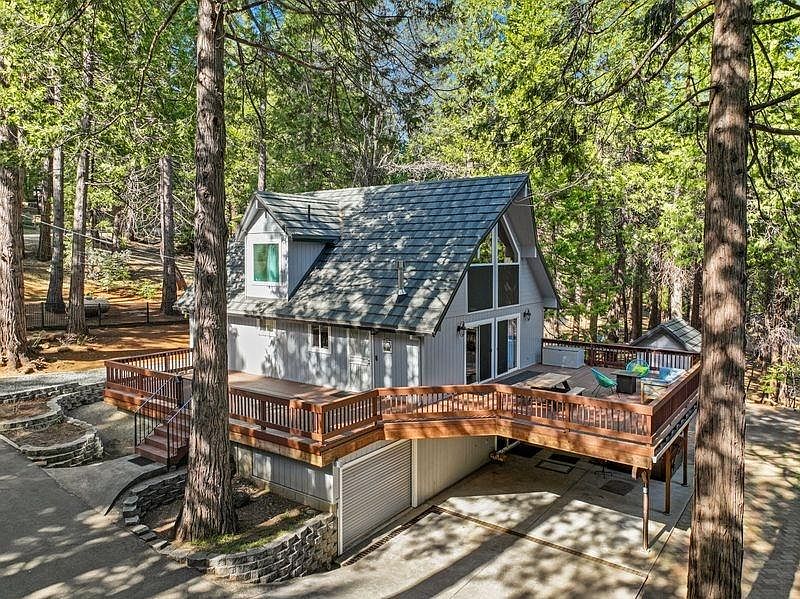 Charming Chalet Style Home tucked away in a Secluded wooded area, providing a Serene and Private living experience. Open beam ceilings and Large windows throughout create a bright & airy feel, allowing for plenty of natural light to flow in. Property features newer 50 Year Boral Steel Roof, which provides long-lasting durability and protection from the elements. Newer dual pane windows also add to the home's energy efficiency, keeping the interior Comfortable year-round. Recent updates include carpet, window Shutters & kitchen appliances. Wrought iron fence with an electric gate offers added Security and Privacy, while the large deck and relaxing views provide the perfect space for outdoor living and Entertaining. The Spa is a great place to unwind and relax after a long day. Other notable features of the home include mini-split systems for heating and air conditioning, a freestanding propane stove and a woodstove providing efficient and comfortable heating options. With all these Incredible features, this property is not only a Perfect home for you to Enjoy but also has the potential for Airbnb income(Is currently). Don't miss out on this fantastic opportunity to own a Charming home in a Secluded and Peaceful setting. Just minutes to Jenkinson Lake and Sly Park Recreation Area!