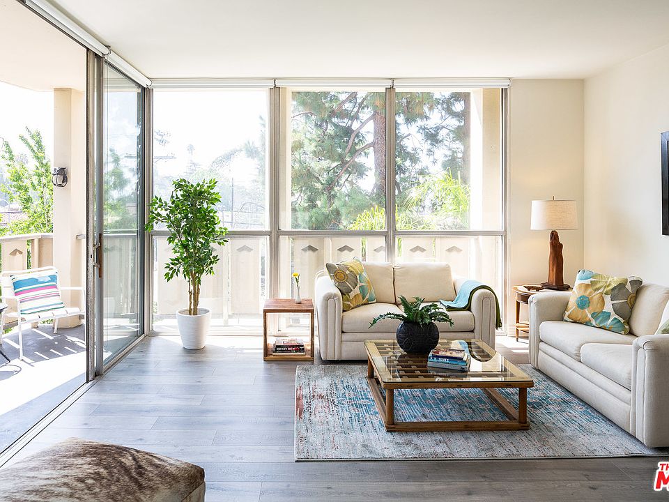 Luxury mid-century modern condominium in Los Feliz Towers! Floor-to-ceiling windows with custom window treatments lead to the wide balcony off the living room and dining room. The updated kitchen boasts wide counter tops and ample cabinet space. Brand new floors, custom closets, lots of storage space. Association amenities include a spectacular resort-style pool area, fitness center and community room. Walk to Griffith Park, Greek Theater, and Los Feliz Village's famed boutiques, restaurants, cafes and taverns. 24-hour doorman and on-site security. Gated and secure 2-car underground tandem parking. HOA dues cover water, gas, central air/heat, and Spectrum cable TV. The premier full-service building in Los Feliz!