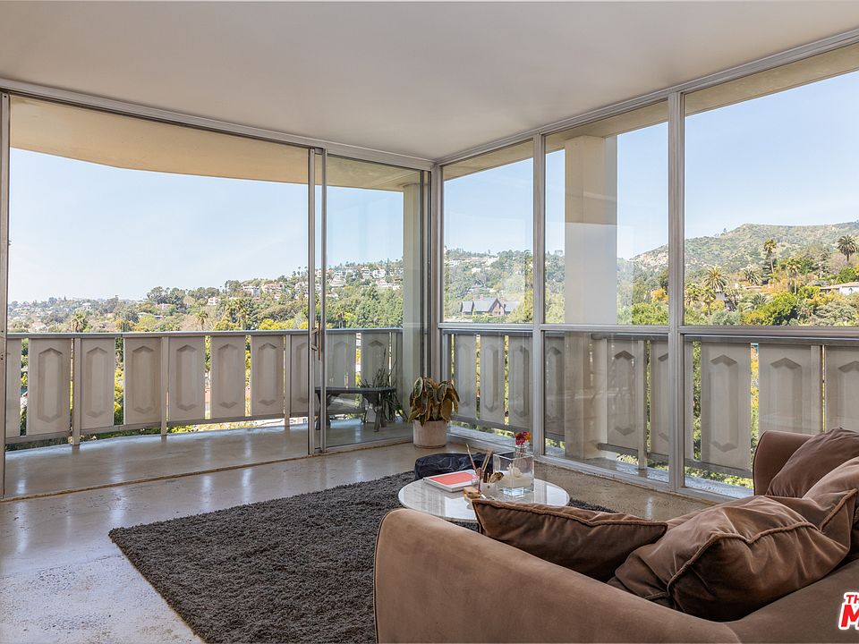 Updated north-west facing corner unit with incredible views in the iconic Los Feliz Towers. This rarely available 2 bedroom/ 1 bathroom corner unit is located on a high floor in the back of the building away from the street and has endless views of the city, ocean and hills, including the Griffith Observatory, and a private balcony that overlooks the pool. The unit features floor-to-ceiling windows which flood the living and dining areas with light, polished concrete floors throughout, and marble in the kitchen and baths. Building amenities include 24-hour doorman, security cameras, gated garage parking (2 tandem spots), guest parking, newly updated pool, fitness center, sauna, meeting room, and newer generators. Great location close to all the trendy Los Feliz shopping/dining on Vermont and Hillhurst, Griffith Park, the Greek Theater, hiking trails and more! HOA dues include water, gas, trash and basic cable service.