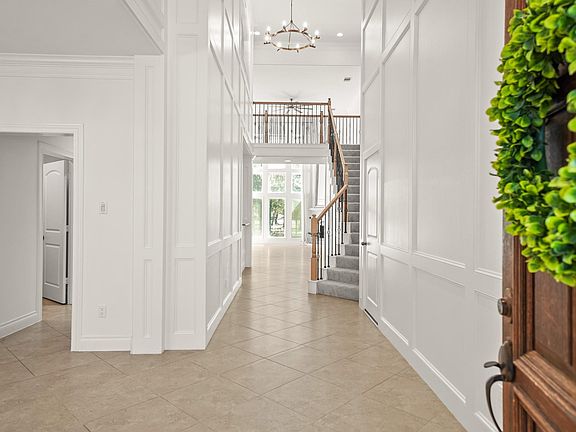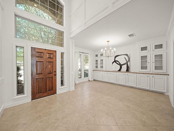 Located in Riverstone on a cul-de-sac street with mature trees and no neighbors behind sits this beautiful home with a brick and stone exterior. Entry opens to 20-foot ceilings, tile floors, dining room with built-in buffet with glass front cabinets and spacious living room w/cast stone gas log fireplace, built-in bookshelves and floor-to-ceiling picture windows. Kitchen has breakfast bar, granite counters, S/S appliances including a 5-burner gas cooktop, refrigerator stays and nearby breakfast room, half bath and laundry room with W/D. Primary suite has sitting area, high ceilings, crown moulding and floor-to-ceiling windows with plantation shutters. Luxurious bath has dual sinks, soaking tub and glass shower. Wrought iron staircase with balcony views leads to game room with built-ins, bedroom with ensuite bath and three spacious bedrooms with third full bath. Fabulous backyard with park views has covered patio with brick columns, outdoor gas stub and a Pit Boss Smoker is included.