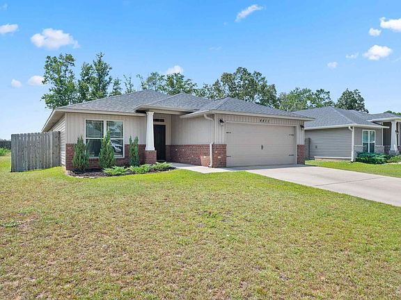 Welcome to this charming 3-bedroom, 2-bathroom home located in Woodlands subdivision. Built in 2019, this like new home is move-in ready. As you enter the foyer, you'll be greeted by a spacious family room with vaulted ceilings. The kitchen features granite countertops and stainless steel appliances. The master suite offers ample space and features a box ceiling, while the master bath includes double vanities, granite countertops, a tile shower, and a garden tub. The covered patio and fully fenced backyard creates the ideal setting for cookouts and outdoor activities. The two-car garage provides ample space for storage and parking. Woodlands subdivision is beautifully landscaped, features paved sidewalks, and includes a community park with a playground for kids to enjoy. Within minutes of Interstate 10 and Highway 90, this home is conveniently located near shopping, dining, NAS Whiting Field, and the UWF campus. Schedule your showing today!