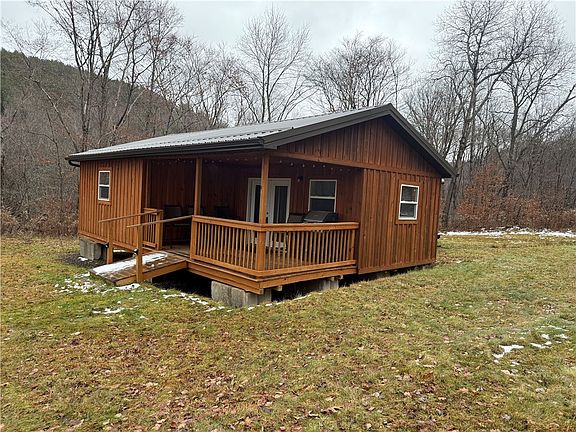 Just two years young and set in the heart of the countryside near the village of Hinsdale, this 2 bedroom, 1 bath cabin on 4.75+/- acres offers a rare blend of comfort, simplicity and potential. You’ll arrive via a dead end road that’s plowed and maintained year round, giving you peace and privacy without sacrifice. Step onto the welcoming front porch where sweeping valley views open up before you—an ideal place for morning coffee, quiet reflection or watching the sunset.