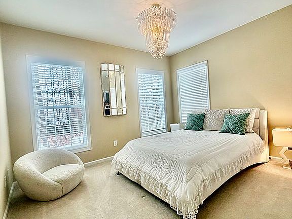 The primary suite offers vaulted ceilings and a large walk-in closet. Recent upgrades include a new roof (October 2024), three new dormer windows (November 2024), new AC furnace, permanent holiday lighting, iron French-style double panel entrance doors, and recently completed professional landscaping. An in-ground sprinkler system adds convenience and curb appeal.