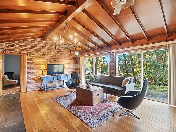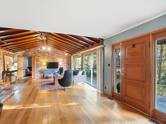 Mid Century Modern gem nestled up to Indian Hill on 1+ rolling wooded acres! Wide open interior spaces, sprawling Primary suite, 4th bedroom has living area and separate entrance that flexes lots of possibilities! The grounds provide play space and privacy yet just a short walk to ALL Mariemont has to offer. House needs updating but has gorgeous setting and soooooo much potential! Make this one your forever home.Property to be sold as is.