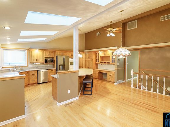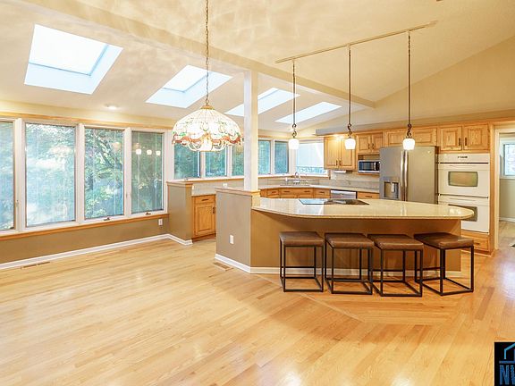 Beautifully updated in 2025, this 6-bedroom, 4-bathroom ranch sits on over half an acre (.57 acres) in the coveted Country Club neighborhood—one of Sioux City’s most desirable northside locations. Mature trees, landscaping, and a quiet, tree-lined street set the stage for a true forever home. Step inside to find Don Hanna hickory wood floors, custom oak cabinetry, and natural light pouring in from every angle. The spacious kitchen is a showstopper with granite countertops, center island, Jenn Air double oven, Bosch dishwasher (2025), stained-glass buffet, and built-in desk. The luxurious primary suite has it all: dual sinks, walk-in shower, soaking tub, and walk-in closet. Sun-filled living areas upstairs and down feature gas fireplaces, while the finished basement—with its own entrance, HVAC, and laundry—offers a perfect setup for guests, a rental unit, or a private mother-in-law suite. It also includes a workout room, large laundry area, storage galore, and a bedroom with built-in desk, bookshelves, and cabinets. Every bedroom is designed with built-in closet organizers for maximum function. Extensive updates provide peace of mind: all new vinyl siding, gutters, soffit, and roof (2025), plus nine new Gerkin vinyl windows. The sellers also invested in replacing the retaining wall and professionally removing blighted ash trees, ensuring a safe and polished landscape for years to come. Additional features include a Kinetico water system, plantation blinds in the living room, main floor laundry with laundry shoots, a 2015 forced-air furnace, and a 2008 basement heat pump. Outdoor living is easy with an all-weather deck, backyard patio, and a dedicated mower/garden storage room. A flat, spacious driveway and oversized 2-stall garage with extra storage space up front make parking and projects simple. With its blend of size, thoughtful updates, and unbeatable location near schools, shopping, and downtown, checks every box.
