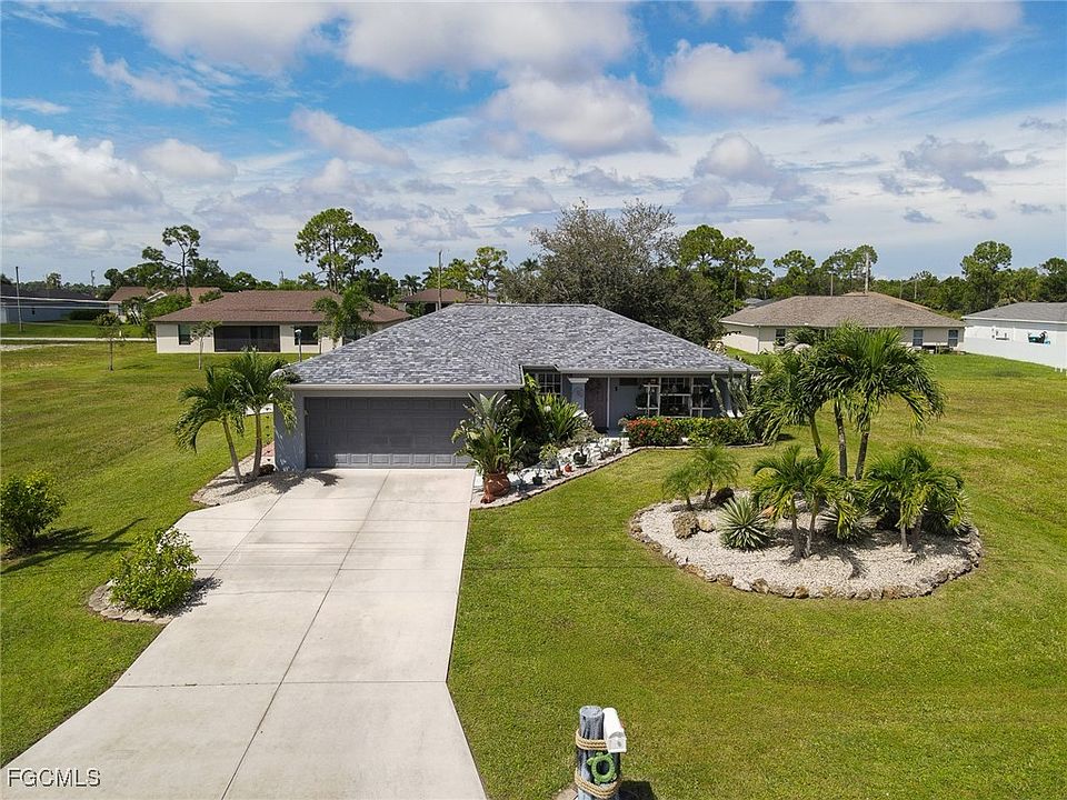 Step into this beautifully maintained property with 3 Bedroom 2 Bathroom Home. Located in NE Cape Coral. Roof was installed in 2023. The landscape in the patio, is the perfect spot for relaxing after a long day. Not located in a Flood Zone! Perfect Starter Home!