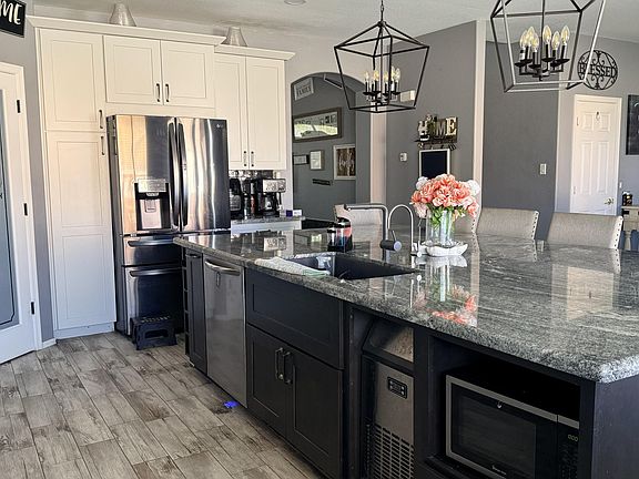 Lush turfFarm sinkCoveted one bedroom downstairsFrench doorsGourmet kitchenUpgraded hanging lights