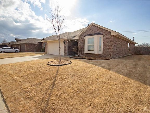 This one is more than ready, with a fresh coat of paint and new carpet there is nothing to do in the home but move in. The lovely entry will take you down the hall where there are 2 bedrooms, both nice size and with good closet storage and a full bath between the bedrooms. Walk further and you will come to a large living area with a beautiful fireplace, a large breakfast bar and eat in kitchen dining room. The kitchen is nicely opens up to the living room. The kitchen offers granite counters, pantry and a wonderful layout. The master bath room comes equipped with 2 sinks and 2 walk-in closets. The backyard is nicely taken care of and has a storm shelter.