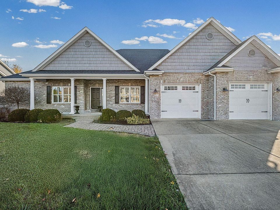 4413 Cairnapple Ct. sits in the heart of the highly sought-after Stonehenge subdivision and delivers that “this is the one” feeling the moment you walk in. This well-cared-for nearly 2300 SF ranch offers a bright, easy layout with rich hardwood floors, a true split-level floorplan, and a welcoming living room highlighted by a gas-log fireplace. With some recent interior paint and updated lighting, a fresh and inviting atmosphere is felt throughout the home. The kitchen is a standout, built for anyone who loves to cook or gather - solid surface countertops, a large island with seating, a gas cooktop, Haas custom cabinetry, and a generous pantry. You also get a cozy nook for everyday meals and a formal dining area for gatherings. The home is equipped with Anderson windows and solid wood interior shutters throughout, adding lasting quality and comfort to every room. A convenient laundry room sits just off the garage, complete with a utility sink and a Maytag washer and dryer that stay with the home. The sunroom offers a peaceful spot to unwind year-round and leads to an outdoor setup made for relaxing: an oversized covered and open patio, beautiful landscaping, and a fully fenced backyard. Thoughtful storage is everywhere, including pull-down attic access in the garage. The primary suite feels like its own wing, complete with a private bath featuring a dual sink, a separate built-in makeup counter, a ceramic tile step-in shower, and a huge walk-in closet. Two additional spacious bedrooms and a full bath round out the comfortable, functional layout. Located close to shopping, dining, schools, and Purdue University, this home blends quality upgrades with an inviting atmosphere. You will even discover a neighborhood community clubhouse, pool and playground for endless fun - a true must-see in Stonehenge!