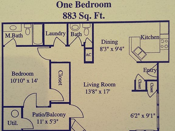 - Total interior livable area: 883 sqft
