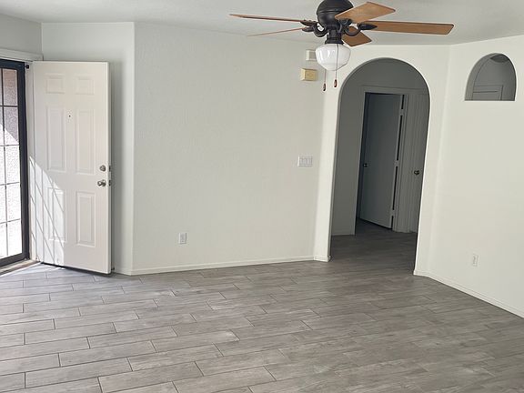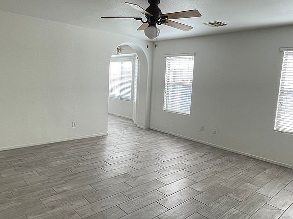 Beautiful single family house, 3 Bedroom 2 full Bath with paved front yard, partial paved backyard and cover patio. Lots of enjoyable backyard living space. Two car garage and huge storage cabinet. Refrigerator, Microwave, Washer and Dryer included. Ceiling fans in all rooms. Wood look tile flooring. Supper clean. Immediate move in.