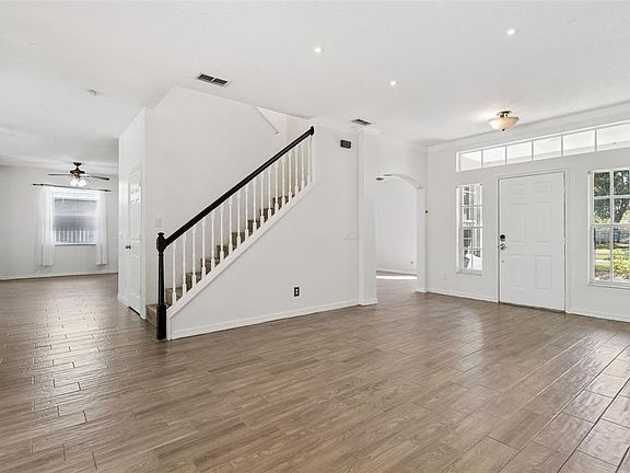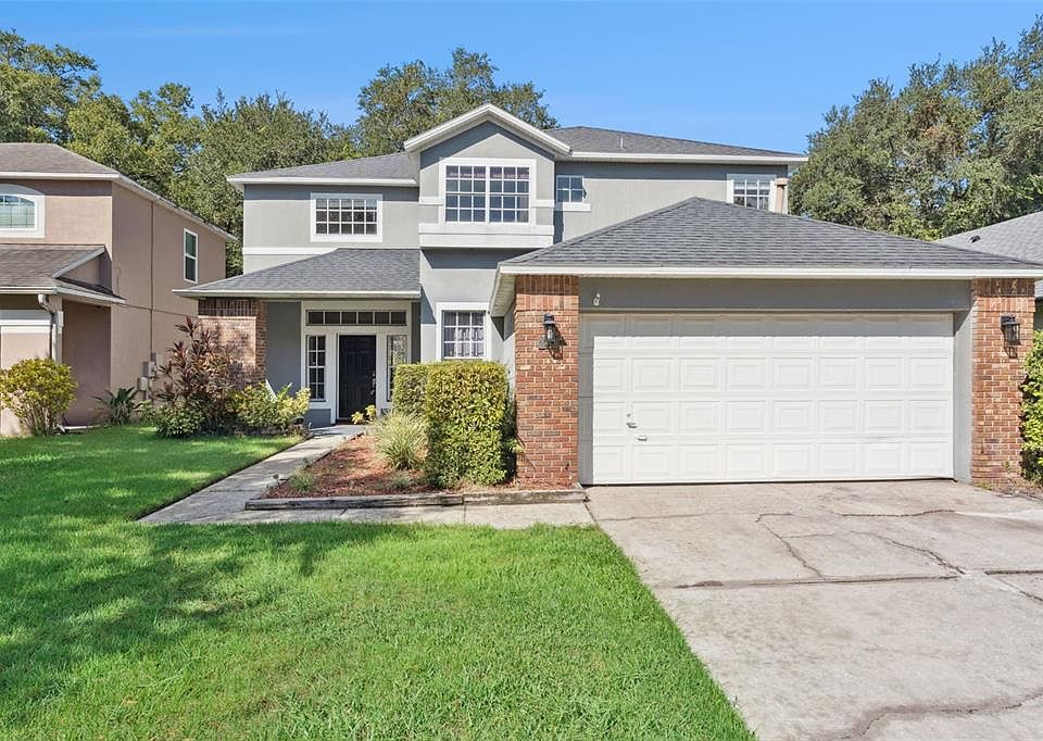 This 5-bedroom home sits on a quiet cul-de-sac in the sought-after East Orlando neighborhood of Riverchase. It includes a POOL, a great layout and thoughtful interior upgrades. Inside the front door, your eyes will be immediately drawn through the triple slider to that beautiful backyard pool! The home offers wood-look tile floors, high ceilings, archways, crown molding and lots of natural light. Around the corner from the spacious living room, the kitchen is open to the family room and features stainless appliances, a tile backsplash, a pantry and a breakfast bar. Just steps away – your backyard oasis awaits! The covered lanai offers plenty of space to grill up dinner while your guests take a dip in the completely screened-in pool. Back inside, head upstairs to find all the bedrooms and a loft area that could be a play space or home office. At the end of the hall, the large primary suite boasts his & her vanities, a soaking tub, A W/C and a step-in shower. All the bedrooms have updated ceiling fans, and the cleverly designed hallway bathroom includes a double vanity plus a separate shower & toilet room. Back on the main level, don’t forget about the powder room that opens onto the pool deck, and all the storage in the attached garage. What an amazing location! You’ll be close to all the shopping & dining at Waterford Lakes Town Center, and UCF is just 5 minutes from your front door. Twenty mins to downtown Orlando, 25 mins to the airport, 40 mins to all the theme parks and 45 mins to the beach! Come see this MOVE-IN-READY Central Florida home before someone else does.