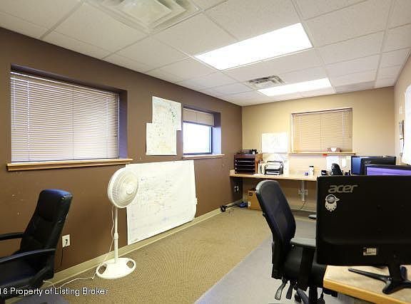 Great property to grow your business! Newer quality construction! 16,000 sq ft of shop space and 2,000 sq ft in office. Reception area, 7 offices, dispatch room, large conference room, 3 bathrooms, one with shower and plenty of storage closets. Office has dual zone heating. Shop is separated into a large 5 bay with wash station. Separate 2 bay shop on the end. Wash station is included.On just under 2 acres, this property offers plenty of yard space and accessibility to the Baaken!Owner will consider a lease!Call for appointment!