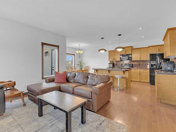 Welcome to this stunning former SHOW HOME in sought-after Ryders Ridge! Step into the grand two-storey foyer, where an open-concept main floor showcases hardwood flooring and a striking floor-to-ceiling stone fireplace. The kitchen offers abundant counter space, a stylish coffee bar, and a gas range with exterior venting — perfect for entertaining or family meals. Sun-filled windows frame views of the fully landscaped backyard, complete with access to a serene walking path. Upstairs, the expansive primary suite impresses with a double-sided gas fireplace, a luxurious deep soaker tub for two, and a generous walk-in closet. Two additional bedrooms, a full bathroom, and a convenient laundry room complete this level. The finished basement provides even more versatility, with two spacious bedrooms, another full bathroom, and plenty of room for hobbies, fitness, or movie nights. With a 220-volt outlet outside and deck ready for a future hot tub, this home blends comfort, elegance, and thoughtful upgrades like the HRV-heat recovery ventilation system. New pendant lights over island, new kitchen faucet and all new toilets this year. The washer is brand new Sept 2025. The good thing about being on a main road is that it is always plowed in the winter and a bus route for school buses.