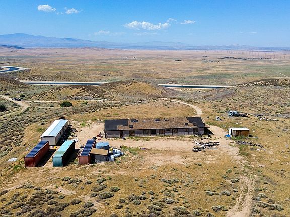 Three large storage containers are included with the sale of the property along with a large water storage tank. There is an unpermitted mobile home and multiple vehicles on site.