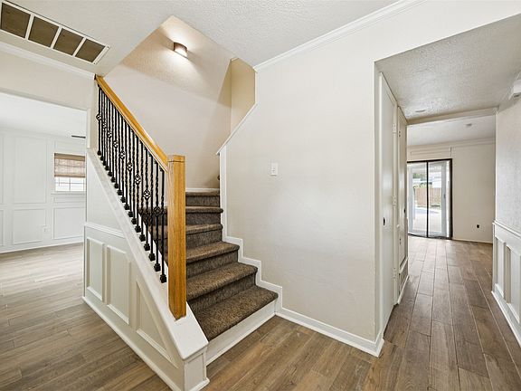 Step inside this inviting 5-bedroom, 3-bath home that blends comfort and function. A gated drive leads to the 2-car detached garage, complete with a workbench and built-in shelving—ideal for storage or weekend projects. This thoughtfully designed floor plan offers two primary suite options, with one located downstairs and the second upstairs, making it perfect for multi-generational living or hosting long-term guests. Upstairs also features generously sized secondary bedrooms with large closets and a full bath, providing plenty of space for everyone. The living room welcomes you with a cozy ventless fireplace and an easy flow into the kitchen and dining areas, creating the perfect setting for both everyday living and entertaining. Step outside to your own backyard oasis. Enjoy a covered patio for outdoor dining, a heated pool with wrought-iron perimeter fencing for safety, and plenty of green space for play. The pool has been recently renovated with upgraded plaster, travertine coping, concrete decking, and a glass tile water line. A gas pool heater, added in 2022, extends your swimming season well into the cooler months. Additional peace of mind comes with a roof replaced in 2023. Beyond the home, the community adds even more to love. Spend the day at Watson Park, recently renovated to include a splash pad for summer fun, or take advantage of the new community center and library—perfect for activities, learning, and connection. Conveniently located near HWY 635 & 75, this home offers quick access to premier shopping, dining, and entertainment. You’ll be close to everything the city has to offer while still enjoying the charm of a small-town suburban feel. Schedule your home tour today!